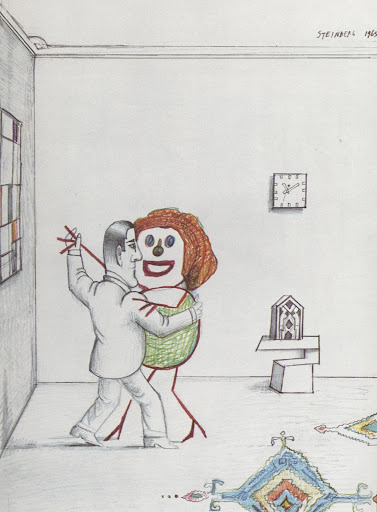 I think Steinberg proves the theory that, in communication, imagination alone is no substitute for sound drawing; that only skilled artists can potently communicate their musings. I certainly don't understand most of Steinberg's drawings, and I doubt anyone does. I suspect their appeal lies in their playful ambiguity, which is a fine thing in baby talk or windchimes, but is neither rare nor enriching in art.