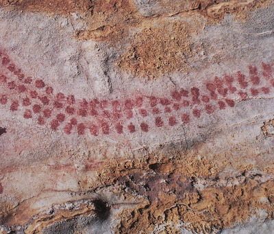 | Red dot patterns painted on the cave walls at El Castillo date back 40,000 years. |