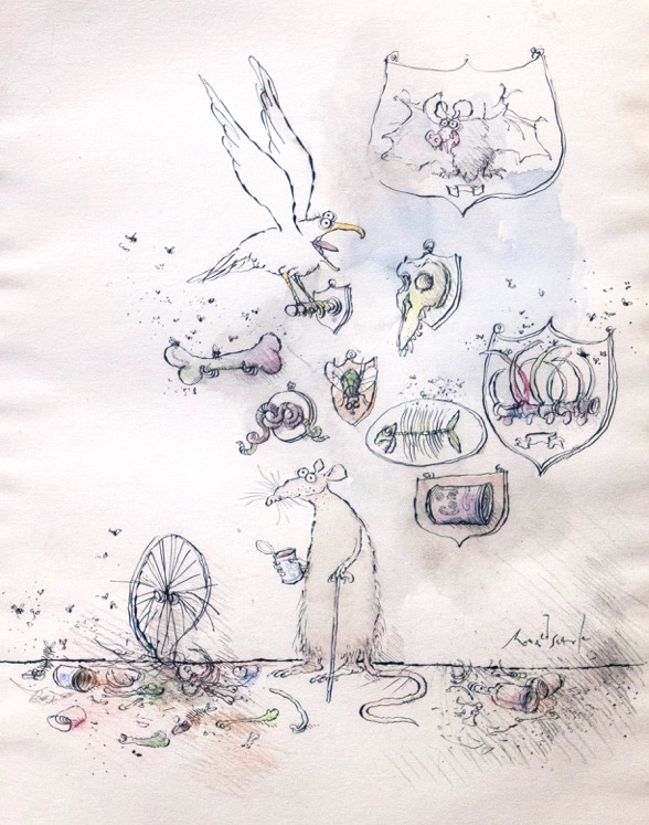 | As fearless with watercolor as he is with ink. |